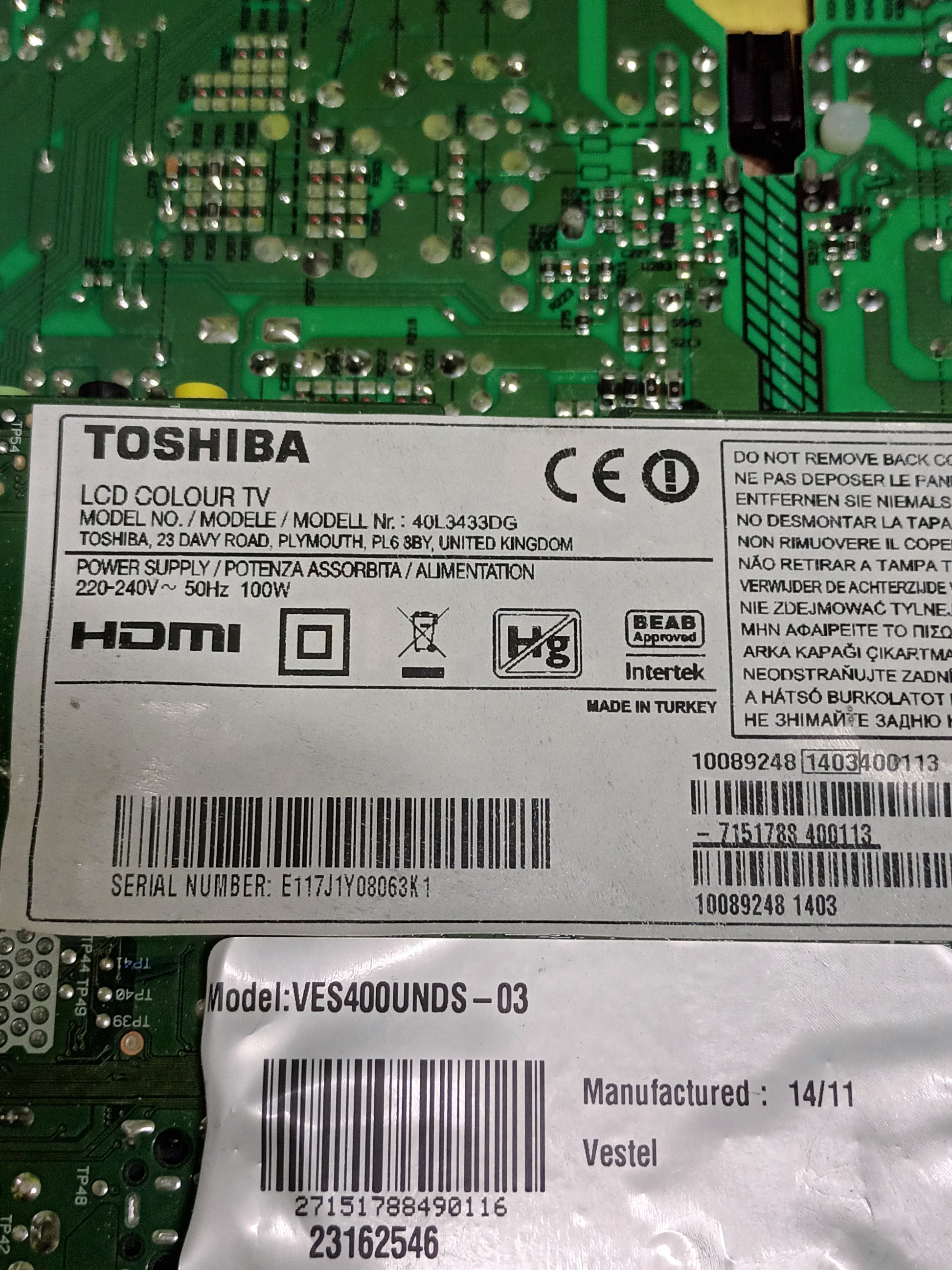 fuente de alimentacion, 17IPS20 de TOSHIBA 40L3433DG