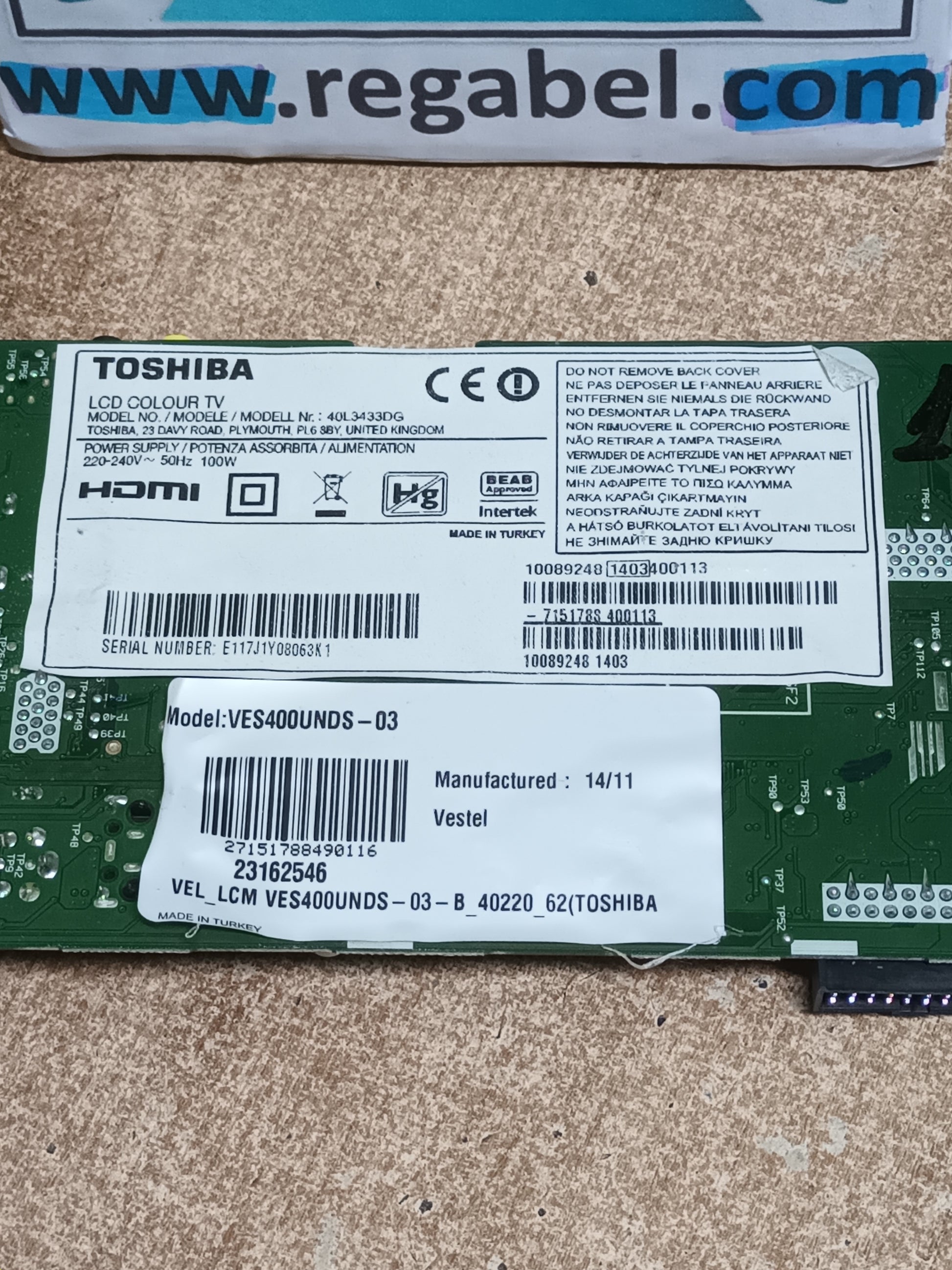 17MB95S-1, de TOSHIBA 40L3433DG