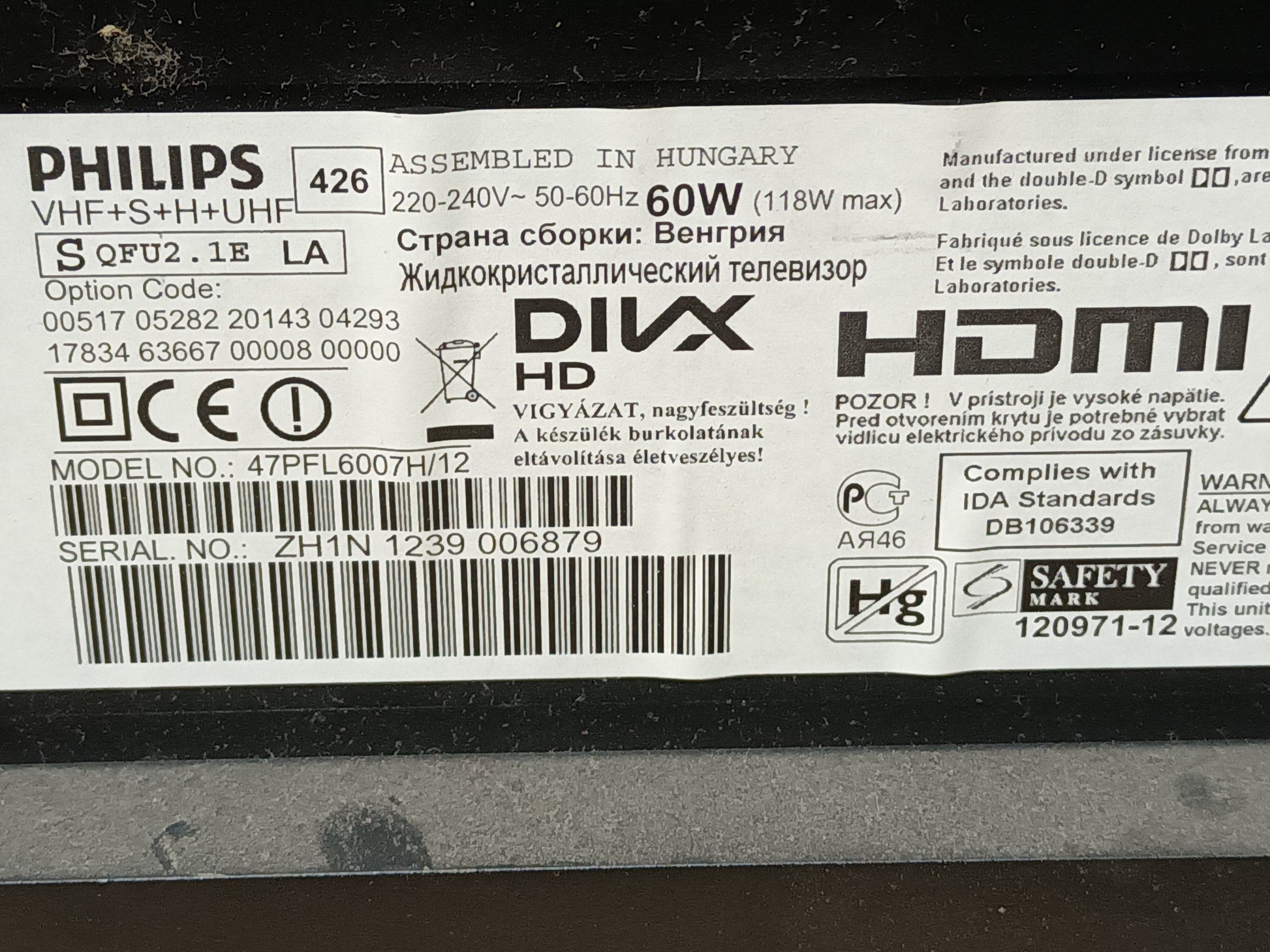 6870C-0402C, de PHILIPS 47PFL6007H/12