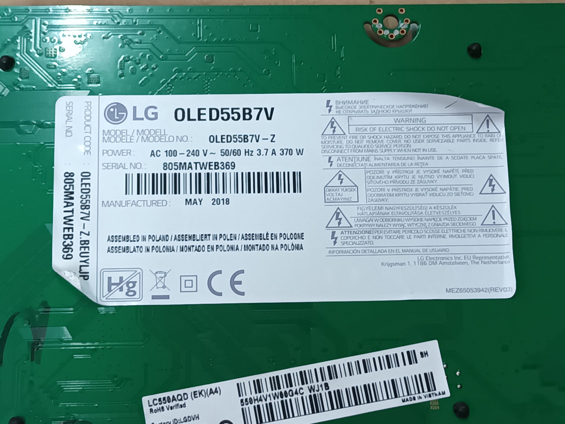 EAX67150604(1.0), EBT64598302, de LG OLED55B7V, NUEVA